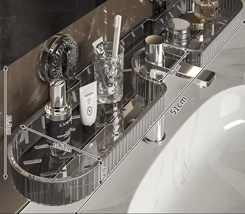 Faucet Suction Cup Organizer Bathroom Wall-Mounted Storage Rack Space-Saving Shelf for Toilet Washbasin Countertop